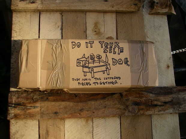 El perro bricolaje nació; todo muy bien montado en forma de caja.