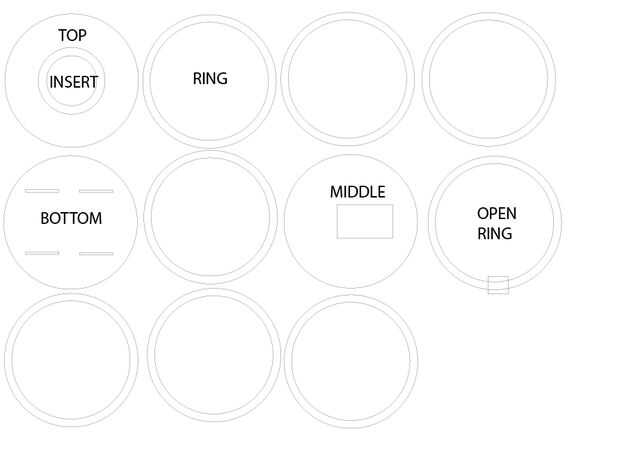 - Pegamento 3anillos en la parte superior de la pieza media y 3anillos en la parte inferior de la pieza media. **