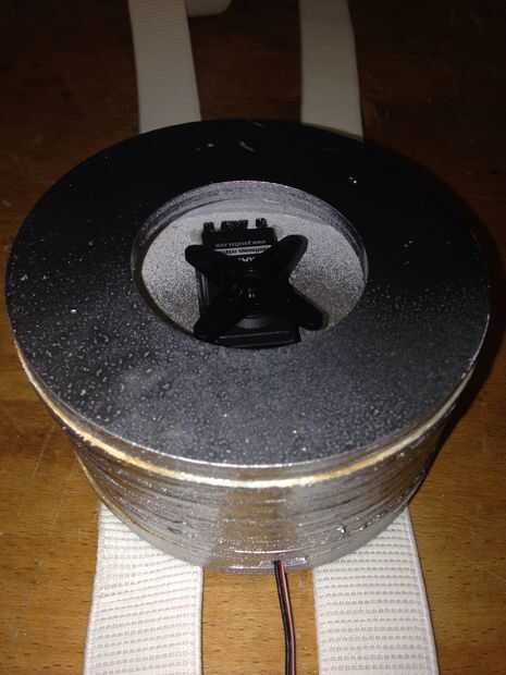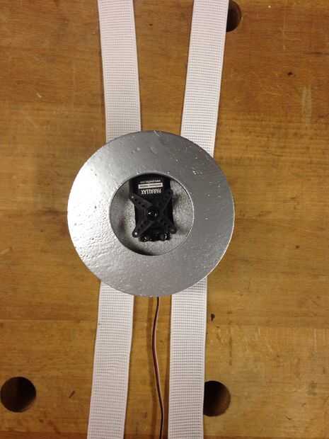 - Pegar la parte inferior al anillo abierto. Asegúrese de que el fondo está orientado para que el elástico no golpeó el servo.