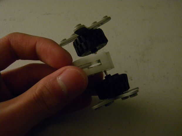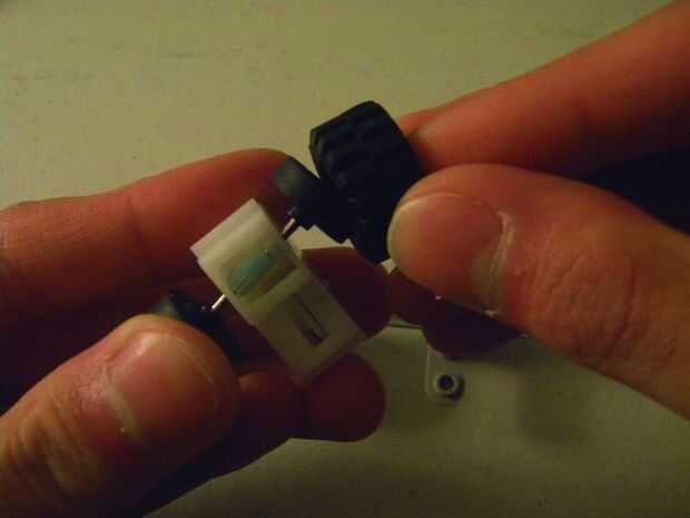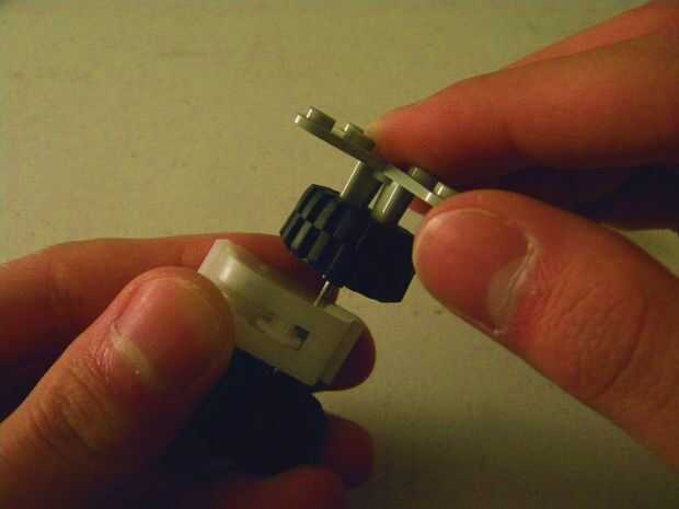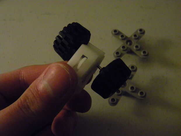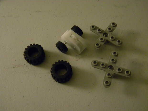 Tomar el motor del juguete, neumáticos y rotores de Lego y ponerlos juntos. Coloque los neumáticos en las ruedas del motor, haciendo los bordes incluso si es posible. Luego tomar los rotores y colocar en los neumáticos.