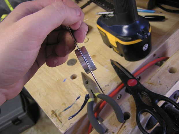Utilicé el cable a través de los orificios internos para hacer más pesado el "cacharro".