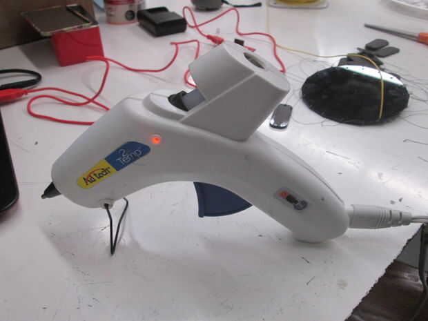 Esto protege la conexión si no provisional y potencialmente errática entre la pintura conductora y el hilo.