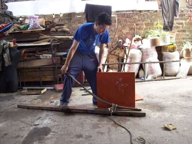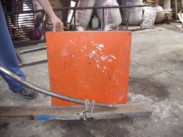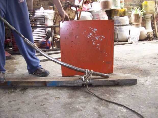 ¿No te ha ocurrido cuando imagen de alguien simplemente no esta...? Como no tego un doblador a la mano tuve ingeniarme una forma, antigua y artesanal de palos los tubos. Tomas un pedazo de madera, lo atas alrededor dejando un espacio para el tubo, y empiezas a ejercer presion hacia arriba, marca cada 3 cms y aplicas la misma presion. Facil no es asi?...