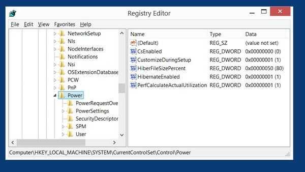 HKEY_LOCAL_MACHINE/sistema/CurentControlSet/Control/poder y cambiar las siguientes claves: