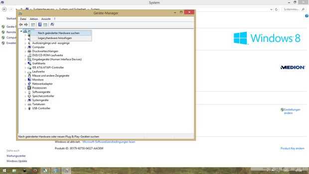 Haga clic en la pestaña superior, consisten en el nombre del PC y haga clic en mover la búsqueda modificado hardware. Windows hace el resto por sí mismo.