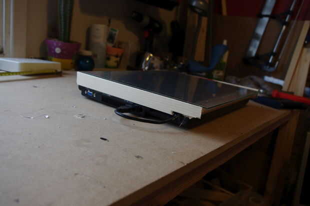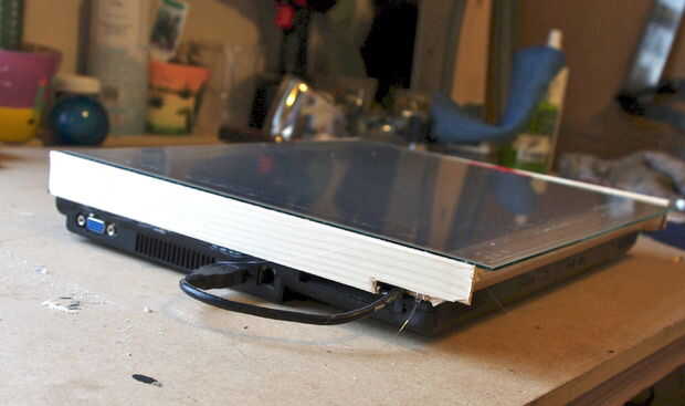 El siguiente es el lado para hacer la diferencia entre el caso de la parte inferior y la pantalla. He utilizado algunos pinos de tira que he cortado a medida y caliente pegado al caso. El un rápido lamer de pintura