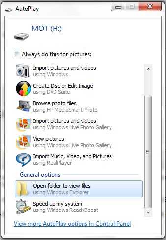 Como alternativa, puede utilizar Windows Explorer para navegar a la unidad asignada a su cámara, normalmente algo como (F: /)