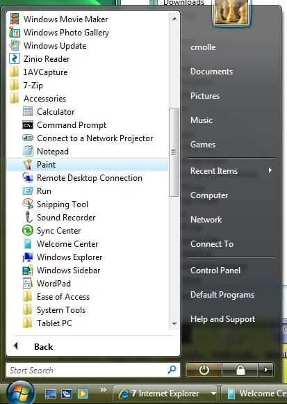 Él iniciar aplicación de pintura (se puede encontrar yendo a Inicio luego todos los programas, accesorios y luego pintar). Haga clic en editar y luego pegar. Esto tomar la foto solo que tomó del escritorio y ponerla en la aplicación de pintura.