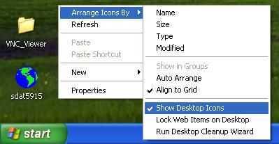 Haga clic derecho en cualquier espacio en blanco en el escritorio, haga clic en "Organizar iconos por" y luego quite la marca de verificación "Mostrar iconos de escritorio" haciendo clic en él. Los iconos desaparecerán pronto.