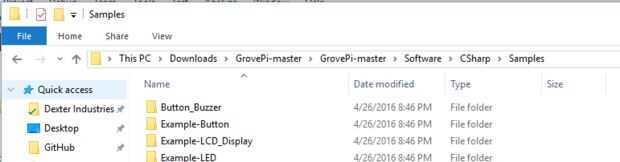 Descargar los ejemplos GrovePi de Github aquí. Descomprimir los archivos.
