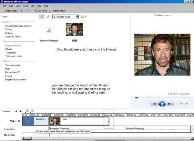 arrastrar las fotos a la línea de tiempo al igual que lo que hiciste con el audio, a continuación añadir efectos si usted quiere cambian la longitud de lo que usted quiere ser.