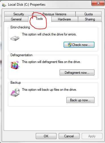 Debajo de esta pestaña contiene las herramientas de software necesario que vamos a utilizar hoy. Consiste en comprobación de errores de disco, desfragmentar y copia de seguridad.