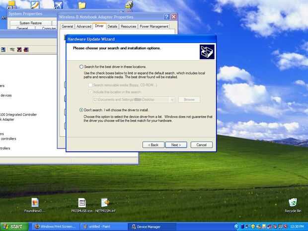 Haz clic en "no buscar, elegiré el controlador a instalar y haga clic en siguiente