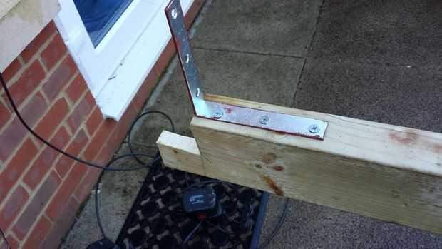 Asegurar que los marcos estén cuadrados atornillando los soportes de ángulo recto en el interior superficie. También sugiero utilizar recortes para las esquinas del puente una vez que cada esquina exactamente cuadrada que puede mantenerlo fijo hasta el final de la construcción. En las imágenes para el siguiente paso, puedes ver cómo se han utilizado estos recortes.