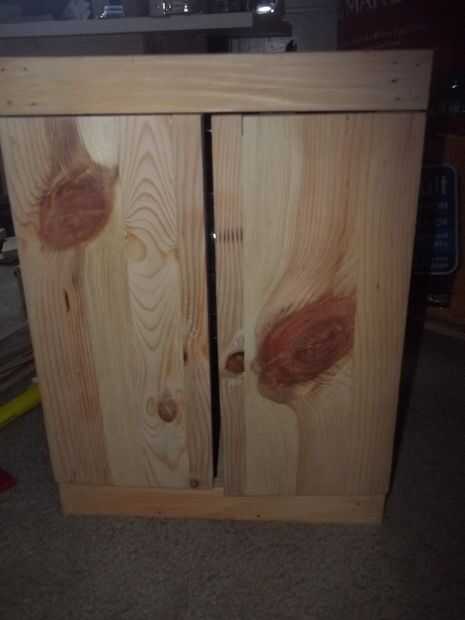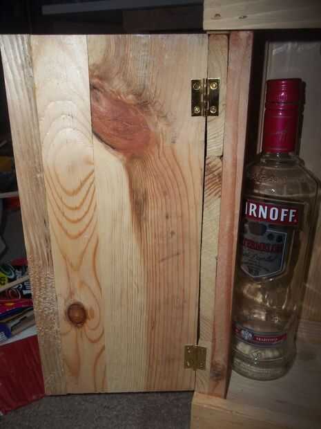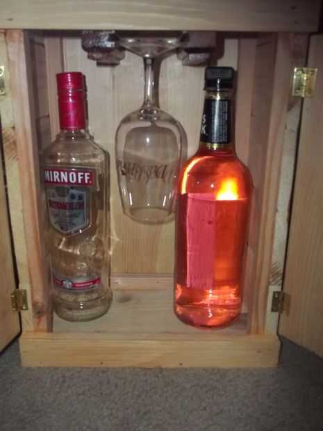 Se trata de pino, palets, lijado, teñido w/MinWax, poli tonos, roble clásico, satén, #370. Viene con 2 gafas correspondientes, usted puede escoger de lo que tengo o tomar la foto un w / es mate. Botellas de vino de jefes de delegación 2. Puerta puede tener 2 pomos o manijas después de lijado final. Su montaje en pared (mostrador fregadero piloto agujeros son taladrados en espalda) o el soporte de escritorio/mostrador. Puedo añadir un material antideslizante en la parte inferior de $3,95, es un color marrón claro. Está en el puesto sólo $69,95.