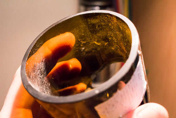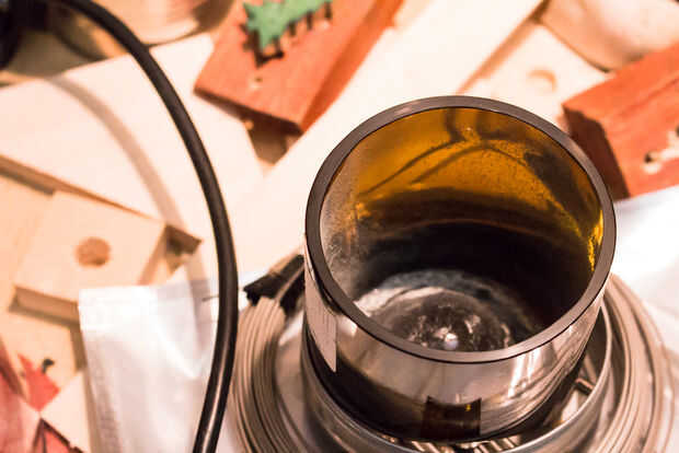Como para virutas en los bordes se obtiene al cortar y áspera lijar (a veces) que aún quedan después de enarenar - prefiero terminarles con una herramienta Dremel y un 425 pulido rueda (25 k RPM funciona muy bien). No es necesario exagerar el borde interior de la esfera del reloj, ya que realmente no será visible y es más difícil encajar muy bien el corcho con vidrio con bordes redondos. Sin embargo, usted necesita trabajar bien el borde más agudo en la parte inferior. No porque se corte fuerte como es, sino sobre todo porque es donde sus dedos descansarán mientras ajuste del reloj o sacar la batería. Corte sus heridas de los dedos y que alguien se cortó con el regalo que hizo son aún peor.