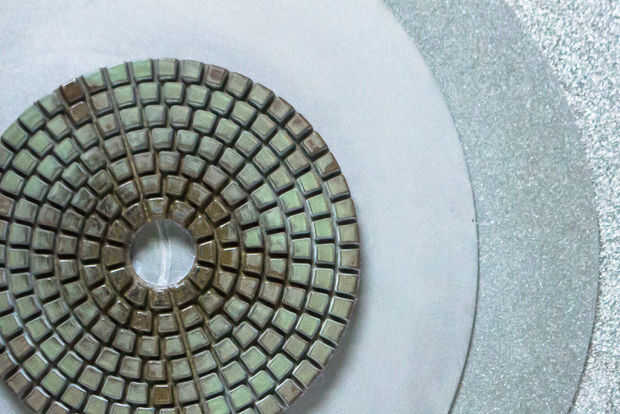 Usé una improvisada vuelta plana la parte cortada de la botella de arena plana, pero con la suficiente paciencia que se podría hacer a mano, así, utilizar papel de lija o lijadora polvo sobre una superficie plana. No hay avanzados métodos científicos involucrados en el lijado, comience con un grano áspero y trabajar su manera para arriba como siempre. Para la esfera del reloj fui al grano 500 discos de vuelta plano (porque no tengo una versión más suave) y había rematado con diamante de grano 800 lijar almohadilla que da un bonito acabado mate sin rasguños visibles distintas.