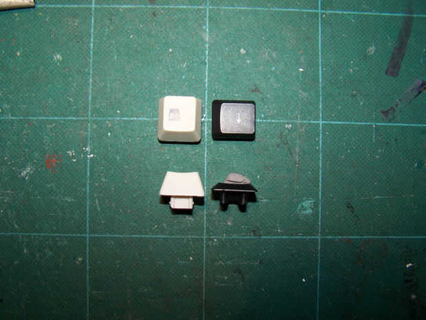 En cuanto a las teclas de ellos mismos, quiere teclas de perfil bastante alto con una buena cantidad de altura en ellos como vamos a estar pegando agujeros en los lados. Las teclas del ordenador portátil o el uso de teclados más moderno el arte negro de ergonomía y que tienen una tendencia a producir sólo cortas claves que no son realmente mucho uso para este proyecto (pero todavía puede ser útil)