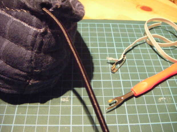 Así que primero tomé a un ripper de puntada y seleccionar los puntos que habían cerrado la cubierta en la parte posterior el zapato, luego abierto escogido el elástico por sí mismo y tiró de él hacia fuera. Quería reemplácela con una cinta plana elástica, que pasa a ser mucho más fácil de coser que la materia estaba tomando hacia fuera (no necesitará el dedal y alicates para este tipo de elástico). Quería sólo las 5 pulgadas alrededor de la parte posterior del zapato a ser elástico. Este tipo de elástico va cómodamente de 3 pulgadas en reposo a 5 pulgadas cuando están estiradas, así que corte una tira de 3 pulgadas para cada zapato.