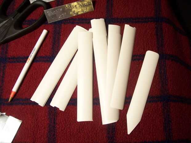 Ahora que tienes todos los suministros podemos empezar.   Decidir cuánto tiempo desea que las etiquetas/etiquetas y cortar un manojo de los listones de la persiana mini.