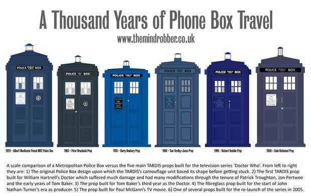 Como se aprecia en el cuadro 1, el TARDIS ha cambiado con el tiempo a pesar de que todos tendemos a imaginar como un diseño estable. De hecho, algunas de sus características no se han movido, y estos son los que vamos a integrar a nuestros muebles de diseño: