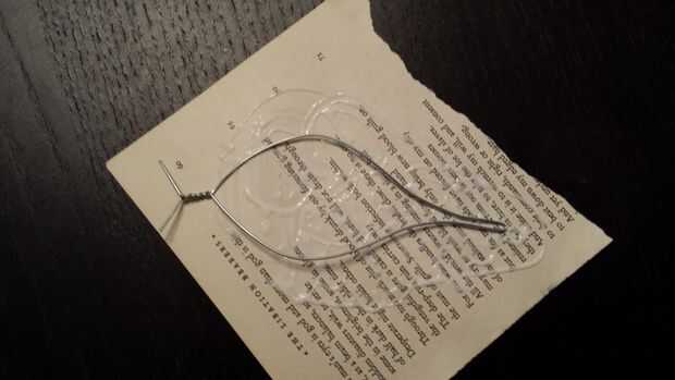 Tome un pétalo y lo puso encima de su papel de elección; las últimas páginas de mi libro usado, en mi caso. Trace el pétalo con el pegamento antes de rellenar ese esquema. Agregar otro pedazo de papel en la parte superior para el cable entre el papel y el pegamento del emparedado.
