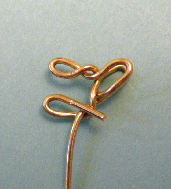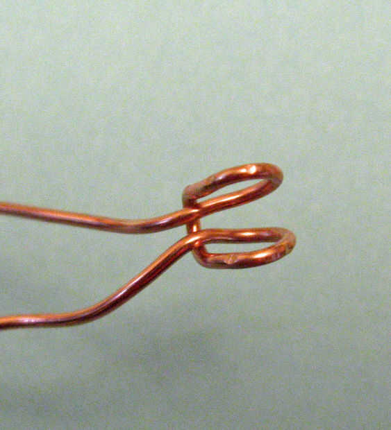 2. doble el extremo largo del cable de 90 grados y formar un lazo algo más grande para el maxilar superior. Haga un bucle segundo el mismo tamaño o un poco más pequeño para formar la mandíbula.