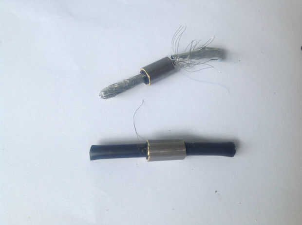 dipolo coaxial de 5GHz, antena omnidireccional. Normalmente estas antenas se hacen enteramente de coax. Mi método aunque sustituye el alambre de cobre trenzado exterior con tubos de metal cortados a la longitud de onda correcta. Este método es mucho