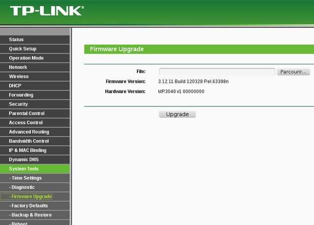 Aviso de la terminación "factory.bin". Esto significa que esta imagen debe ser flasheado mientras todavía estás en el firmware original. Ahora, después de descargar desactivar el adaptador de wifi para evitar conflictos de IP y conectar el router TP-Link MR3040 al PC mediante el cable de lan que vino con él. Abra el navegador y vaya a la página http://192.168.0.1 e inicio de sesión mediante el usuario predeterminado y la contraseña (admin/admin). Ahora vaya a la página de actualización de firmware (ver imagen), hit "browse" y seleccionar el firmware que acabas de descargar y flash!