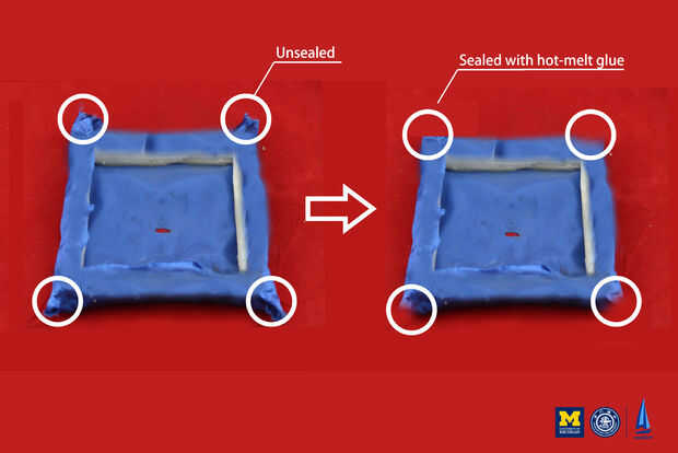 (4) pinza el paño de seda redundante en las cuatro esquinas del marco. Pegar la tela de seda en las cuatro esquinas otra vez para evitar la fuga de aire. Asegúrese de que el agujero en el paño de seda está en el centro del marco. (Figura 6.5 y figura 6.6)