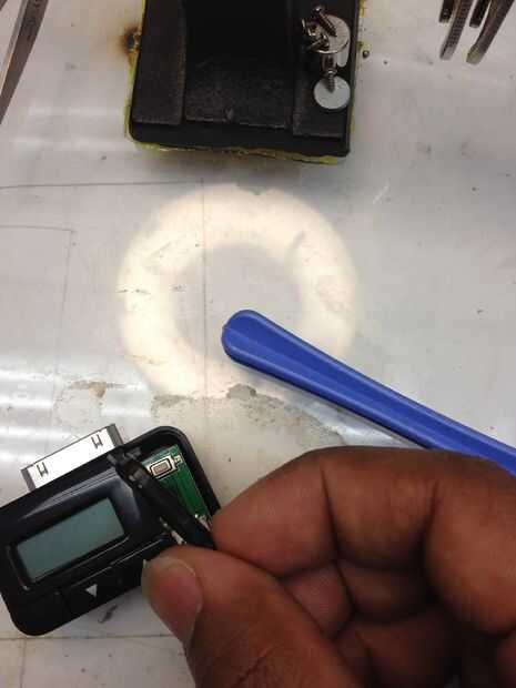 Un tornillo mantiene el resto del caso. Después de quitar el tornillo, utilice la herramienta de palanca para abrir la carcasa.