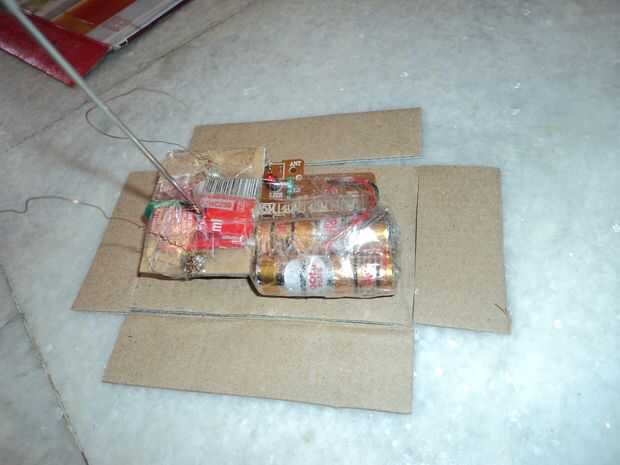 Tome un pedazo de cartón y cubrir el fondo de la palanca de mando con cartulina y hacer un cuadro alrededor de ella. Cubrir completamente con cinta adhesiva y asegúrese que hay espacio para la antena y los dos hilos de contacto y deben moverse libremente.