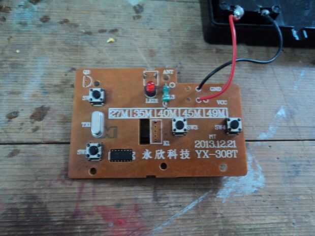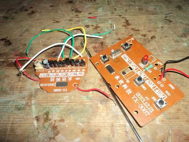 Fácilmente podemos obtener del antigua r/c coche abriéndolo pero asegúrese de que todos los cables sw1, sw2, gnd, vcc, alambres de la antena deben estar en el lugar correcto. El transmisor puede tomarse fuera de control remoto y el receptor se puede sacar del coche. El joystick está conectado al transmisor