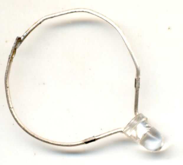 El LED se puede preparar doblando sus puntas alrededor de cualquier objeto redondo conveniente y suelda los extremos juntos. Si ha extraído de un lugar y sus puntas son muy cortas otro trozo de alambre de la curva en un círculo y soldadura en los extremos para hacer un montaje como se muestra aquí.