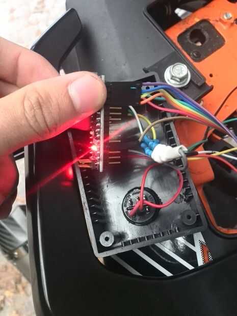 Hay varias formas de hacer esto. Cortamos una pequeña parte del aislamiento lejos, soldado los cables provenientes de arduino en la pieza fueron los cables de la moto están desnudos y aislaron con cinta.