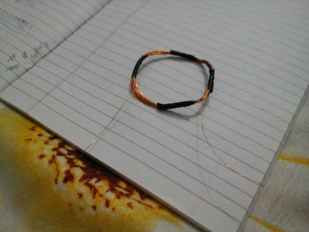 ahora el objeto cylendrical y arranque bobina 20 vueltas de alambre de cobre después de salir de 3 pulgadas en la puesta en marcha. Ahora que te dejó con 2 cables, soldadura ahora un led a él.