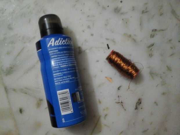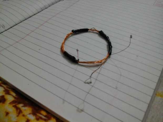 ahora otra vez el objeto cylendrical y arranque bobina 7 vueltas de alambre con 3 pulgadas a la izquierda en la puesta en marcha y la hacen un lazo de torcedura y otra vez viento 7 vueltas sobre él. usted debe quedar con los 3 extremos.