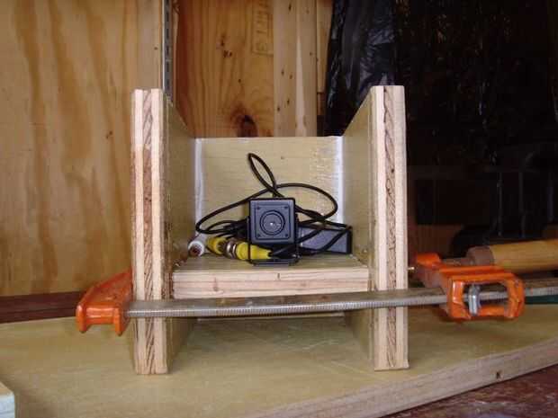 Fije ambas cámaras a extremos opuestos de la base desde la parte inferior utilizando algunos tornillos de madera buena.