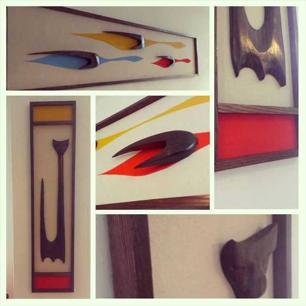Mi amigo le encanta el look de "arte atómico". Encontró referencia materiales a obras similares a las que le gustaría hacer y trabajamos hacia fuera algunos tamaños.