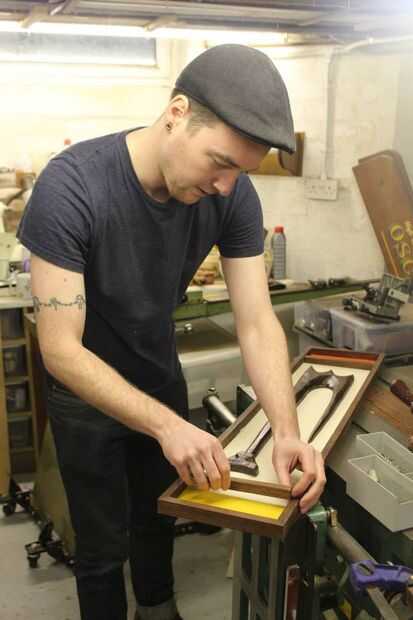 muchos enmarcan dibujos y grabados están protegidos por una estera de la ventana. La obra de arte está articulada a un tablero de respaldo con un tablero de ventana con bisagras para el material del forro. La alfombra y la ventana proporcionan nivele
