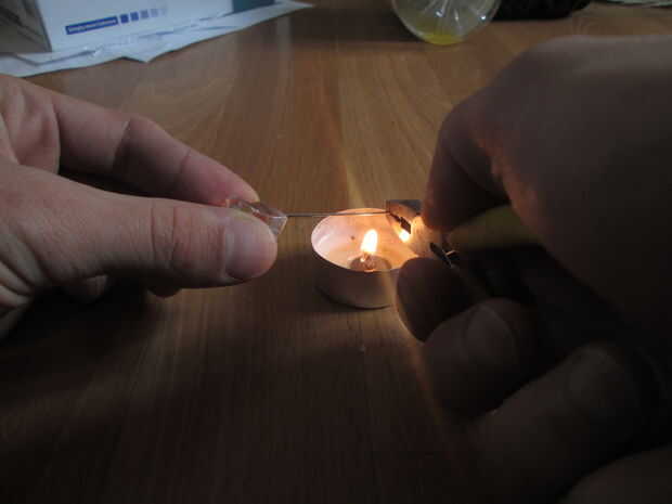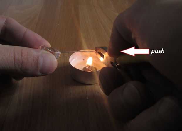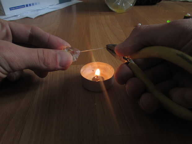 Luego calentar el alambre con una vela. Calor cerca de alicates mientras usted todavía está empujando. Comience lentamente.
