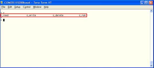 Con esta cáscara, usted puede escribir (o subir) el "C archivo de comandos" vía serial con el programa de terminal.