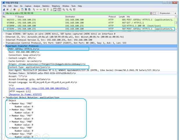Después de enviar paquetes POST en cartero, capturado con Wireshark.