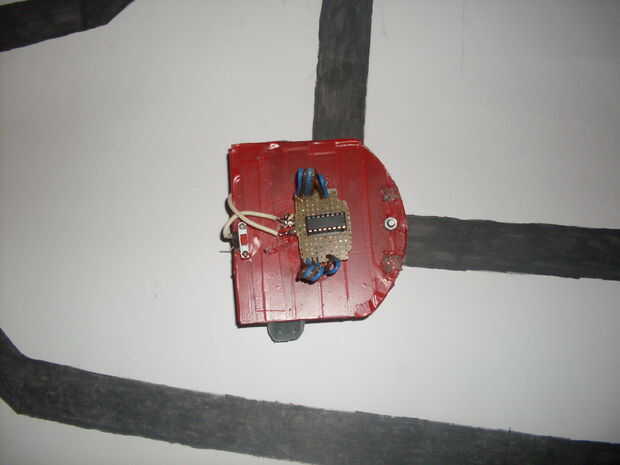 Esta es la historia de cómo hice mi primer robot y las instrucciones para construir uno usted mismo.Es un trazador de línea simple, controlado por dos de la op-amperios. Ningún microcontrolador, sin programación... simple circuitería analógica.He int