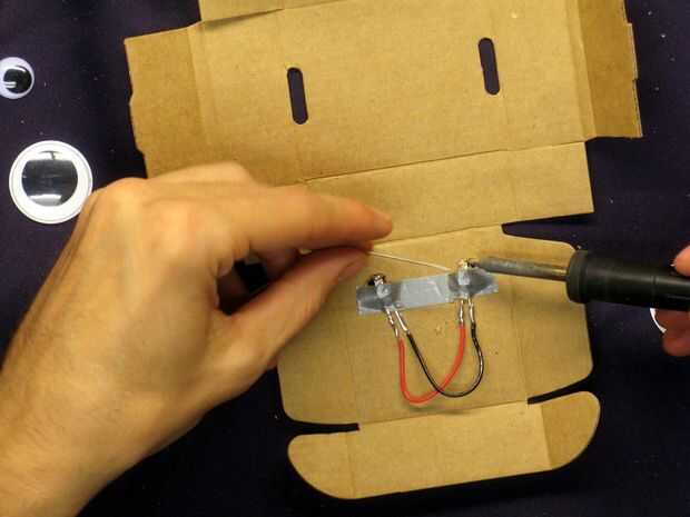 2. cinta. Asegúrese de tener cuidado con eso empalme de la soldadura y dejar la parte superior del led expuestos así como el fondo de los encabezados