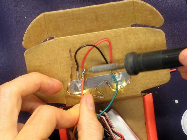 3. los leds y cables hasta la tapa del pegamento. Esto protegerá las cosas mientras que piezas son móviles