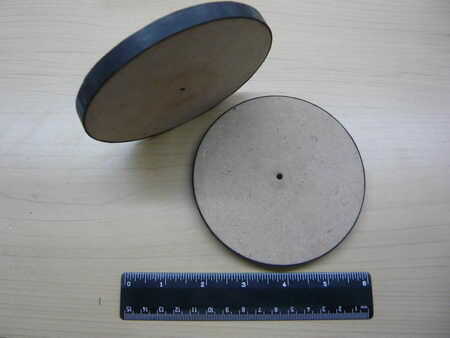 Las ruedas son corte de tablero MDF grueso 1cm usando una sierra del agujero. Para el agarre, anillos de corte de tubo interno del neumático de la motocicleta y estirados sobre la circunferencia de las ruedas.