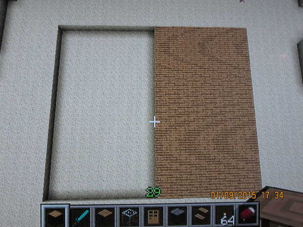 Paso 1: Haga una forma de U Bloques de Oakwood de 4 lugar en una pequeña forma de U (no tiene que ser Oakwood)Paso 2: suelo Lugar un barro y lana de bloquean en el centro de la forma de U.Paso 3: azotea Cuatro bloques de madera de la escalera encima