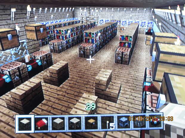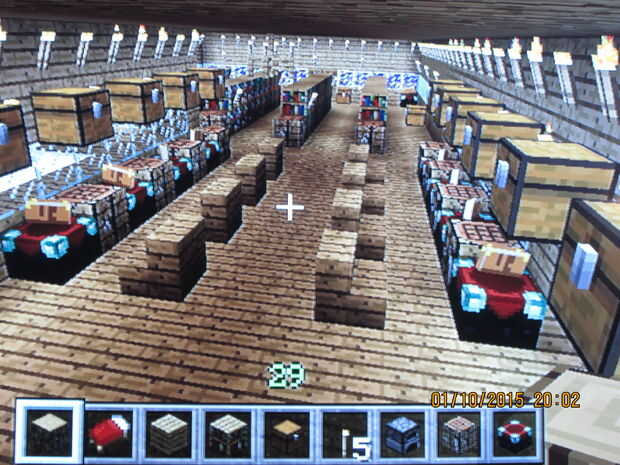 Paso 1: Haga una forma de U Bloques de Oakwood de 4 lugar en una pequeña forma de U (no tiene que ser Oakwood)Paso 2: suelo Lugar un barro y lana de bloquean en el centro de la forma de U.Paso 3: azotea Cuatro bloques de madera de la escalera encima