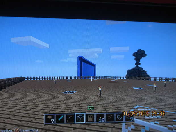 Paso 1: Haga una forma de U Bloques de Oakwood de 4 lugar en una pequeña forma de U (no tiene que ser Oakwood)Paso 2: suelo Lugar un barro y lana de bloquean en el centro de la forma de U.Paso 3: azotea Cuatro bloques de madera de la escalera encima
